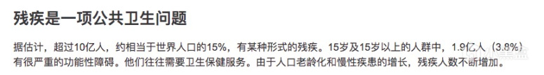 根據世界衛生組織的調查,全世界有超過10億人生活在殘障引起的不便中,即地球上每7個人中就有一人需要無障礙設施的幫助。