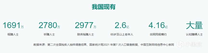 在中國,有1691萬視障者,2780萬聽障者,7000萬讀寫障礙者,2977萬肢體障礙者和2.6億65週歲以上的老年人,他們被統稱爲“障礙羣體”。