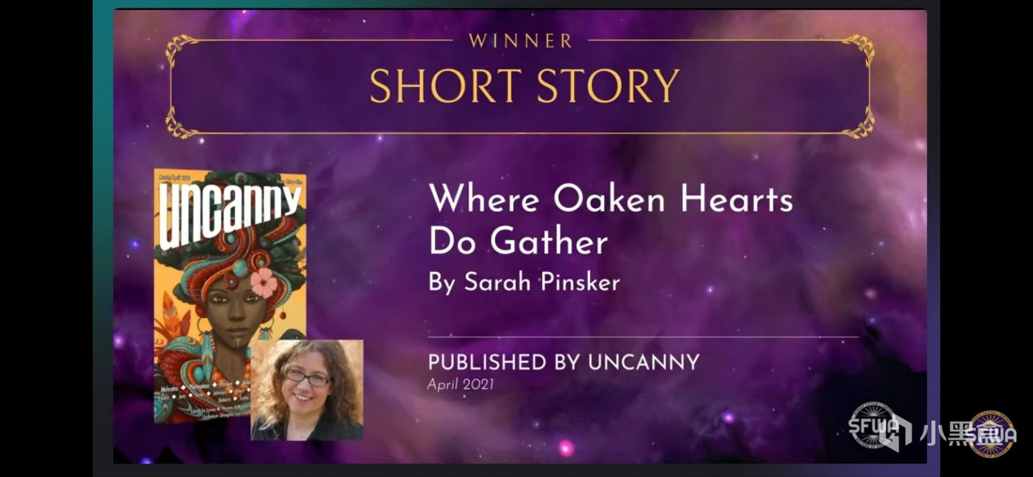 莎拉·平斯克的《橡树心的聚集地》以7轮1199分的绝对优势获得“最佳短篇小说”,Stalking Horses乐队作曲&歌手,她获得过四次星云奖,同时也包揽过轨迹奖和PKD大奖的“最佳短篇小说”;希南·麦奎尔的《任性的孩子》以7轮1071分的绝对优势获得“最佳系列小说”,她毕业于UCB,自称泛性恋者,著名都市奇幻小说家。今年雨果奖几项最具重量级的大奖,无一例外全部给了女作者。