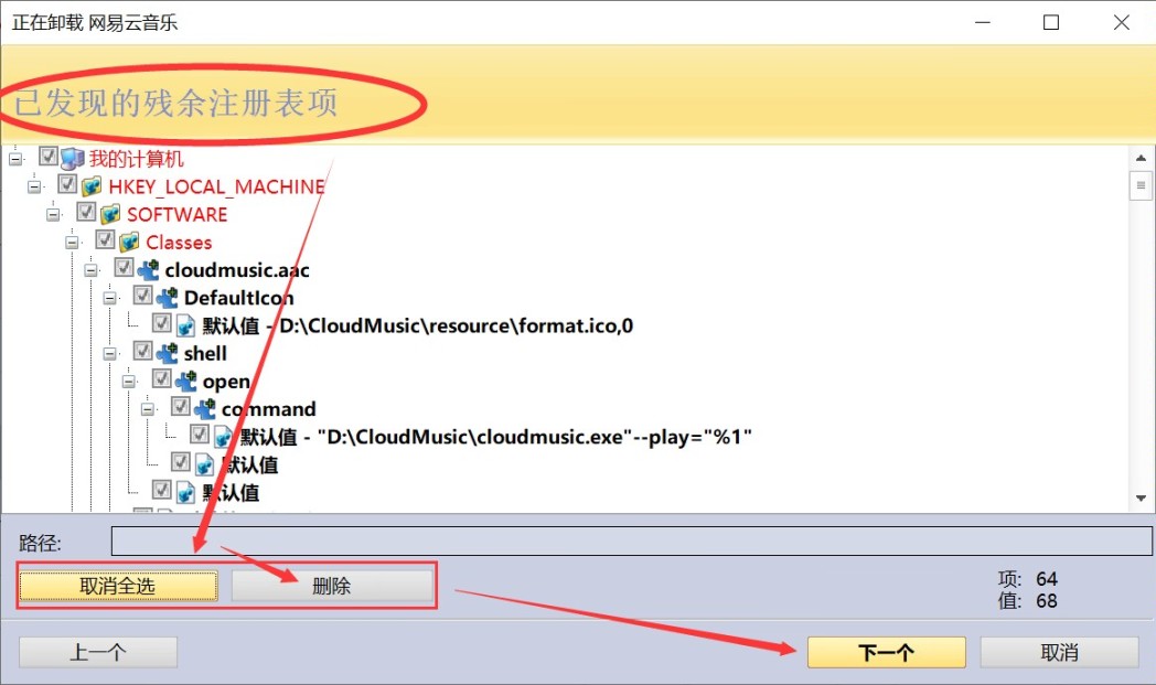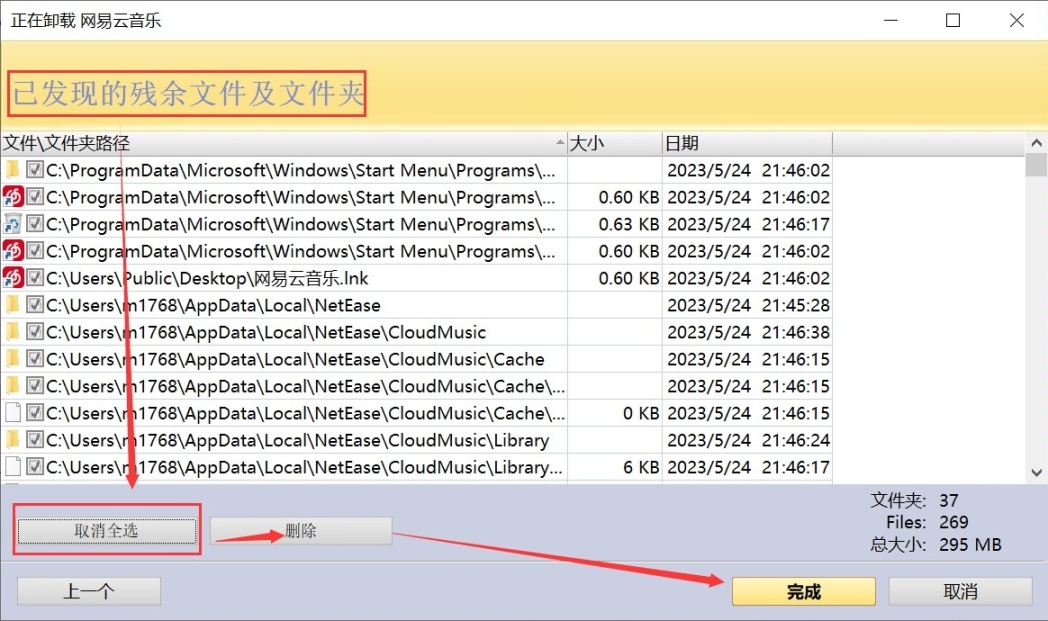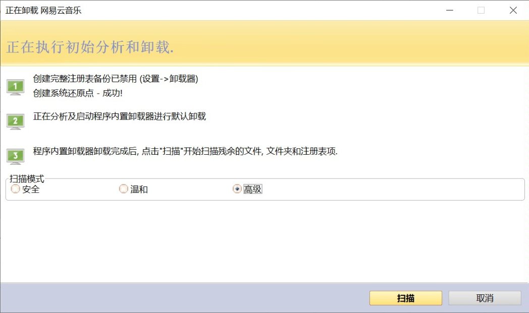 卸載軟件前會貼心的提示[自動刪除殘留]和[創建還原點]的防反悔的“後悔藥”。啓動目標軟件的卸載器,自動掃描殘留文件並清理。