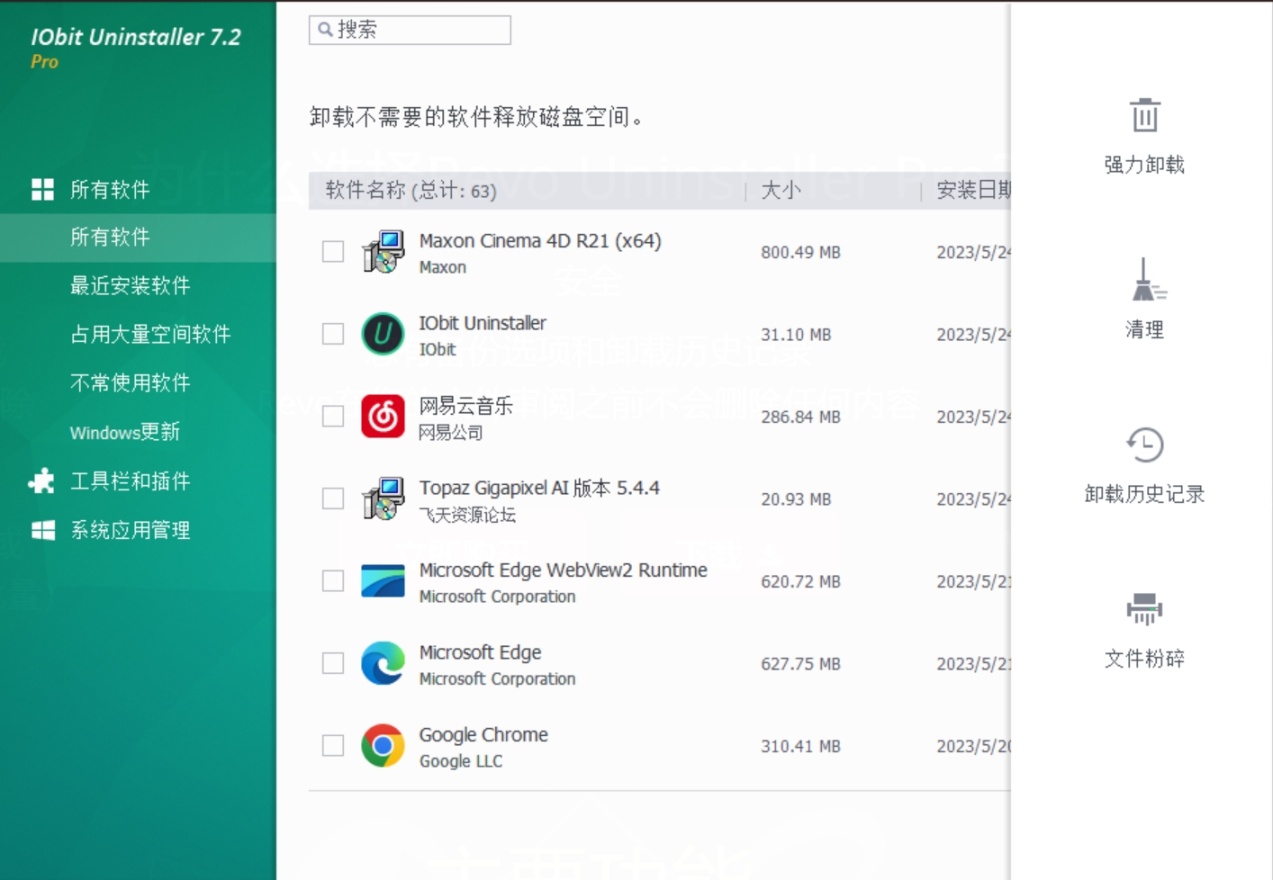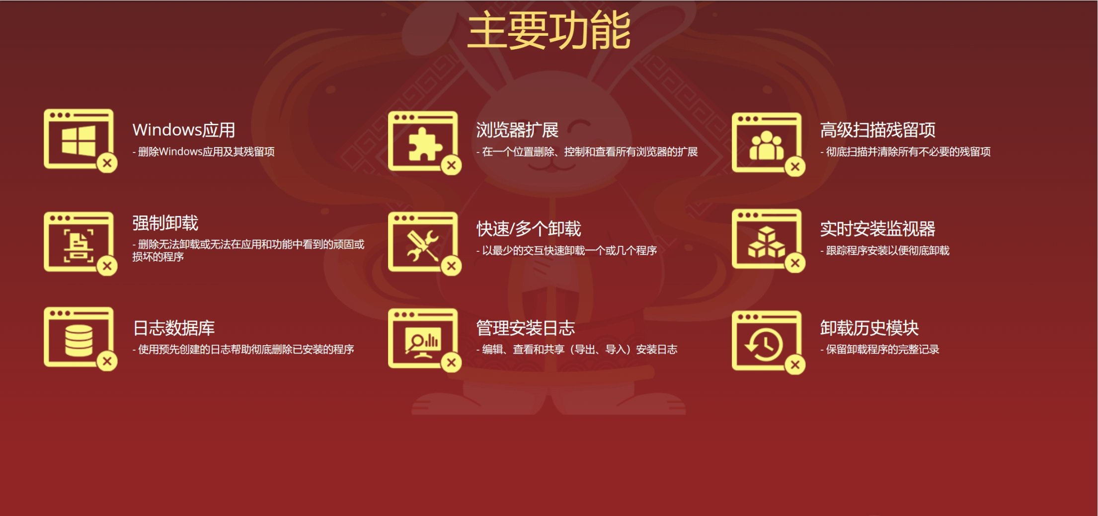 支持一次性批量卸載多個程序,支持卸載瀏覽器安裝的插件,支持卸載系統應用(微軟商店內的應用)來提升電腦性能。建議別亂刪系統應用不然會導致系統功能缺失,別問我怎麼知道的,前幾天剛剛重裝系統。如果還是想刪系統應用,請一定先在網上查一下能不能刪,刪了會有什麼影響特別是名字全是英文的。