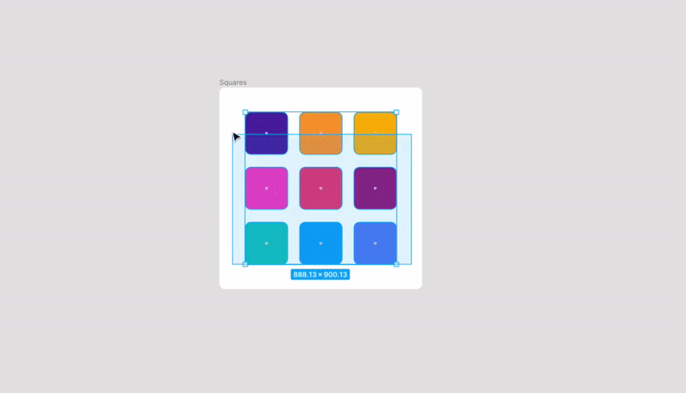 在陣列中選擇多個對象後,通過單擊角落的網格來整理設計。可以使對象之間的所有間距相等,然後再拖動對象以重新排列且調整它們的間距。