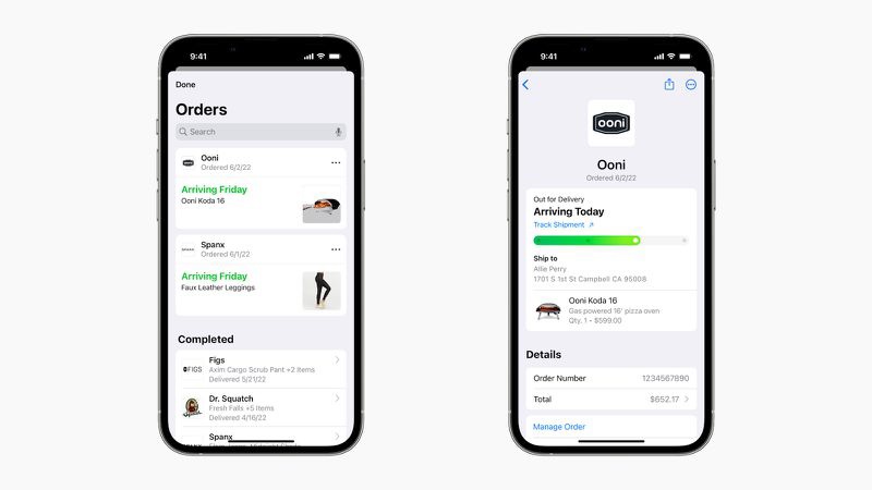 iOS 16 上的 Apple Pay 在電子錢包應用程序中爲通過 Apple Pay 完成的在線訂單提供了新的內置訂單跟蹤信息。跟蹤器提供訂單的預計交付日期,並指示包裹何時交付。