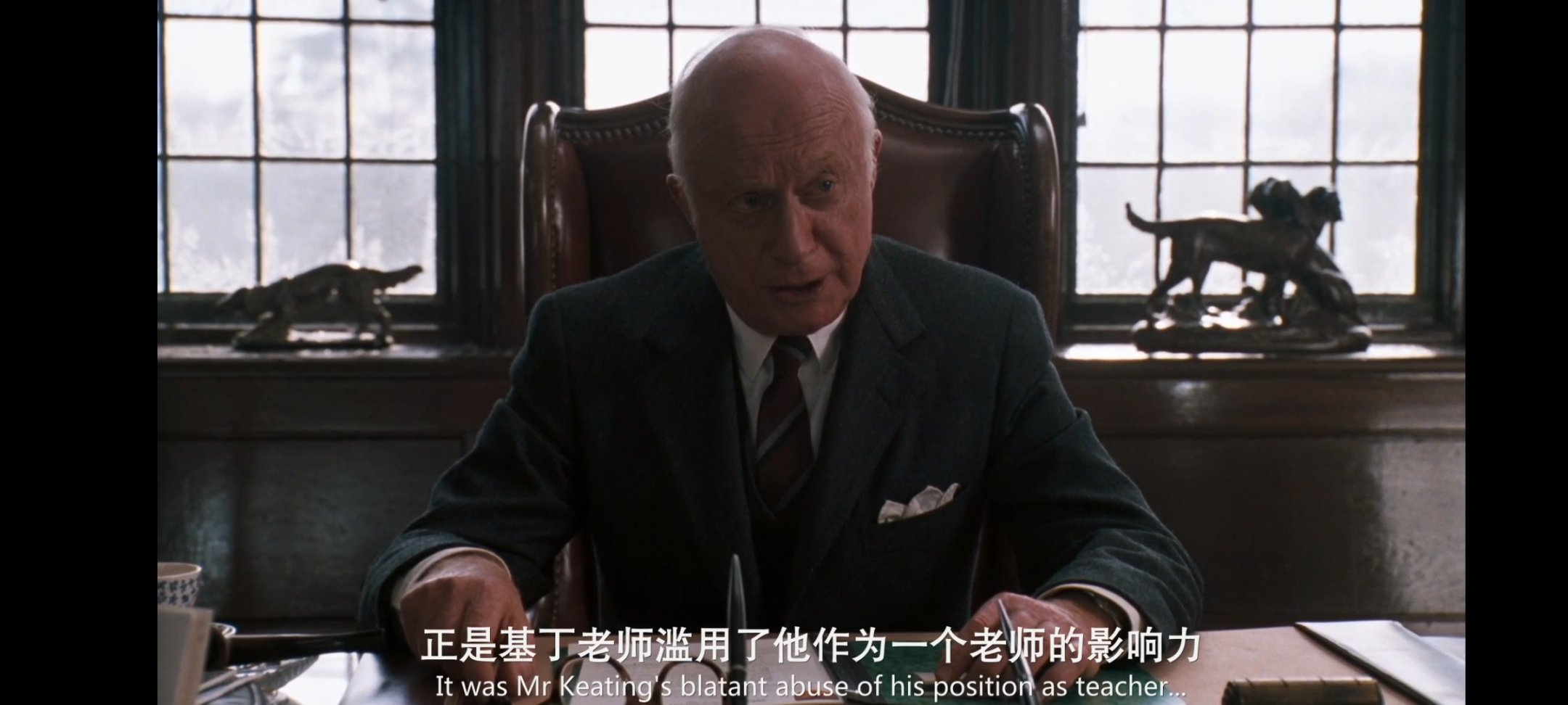 尼爾的死亡到底跟基廷有沒有聯繫,我認爲是有一點的,誠然,尼爾在基廷到來之前,在宿舍裏面展現出來的活潑和開朗就相當顯眼,他看起來快樂而又無憂無慮,實際上他的父母將自己曾經沒做到過的事情,沒得到的東西全部化作一顧怨念壓迫在尼爾的身上,他承受着這些的同時,極力追求着能讓自己放鬆的東西。