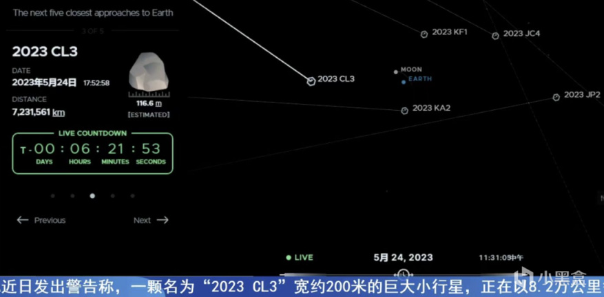 2023 CL3也被列入了近距离接触地球的太空岩石名单中,全球都在密切关注这颗小行星的动向!根据紫金山天文台位于盱眙的近地天体望远镜数据,这颗小行星距离地球最近相当于18.8倍地月距离!
