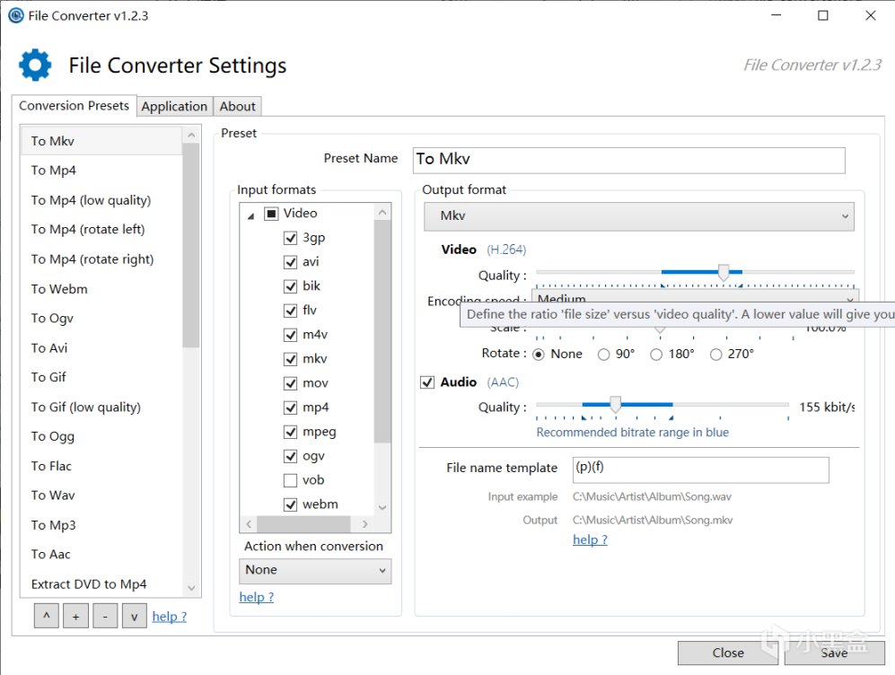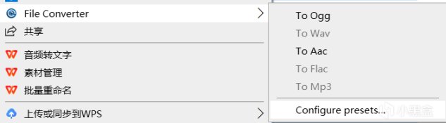 同樣的,你在轉換的時候可能會想順便把這個文件的內容做一些修改或者壓縮,File Converter一樣也可以,就像之前一樣右鍵點進這個菜單,選中其中的 Configure Presets... 選項,就可以打開編碼配置菜單。