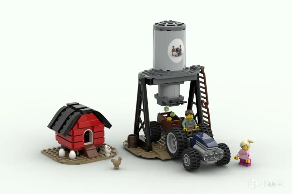 回到這款,套內提供了雞舍,飼料桶、穀倉和交通工具。拖拉機和拖板車之前樂高也有退出過,讓我比較喜歡的是整個穀倉和飼料桶的設計。