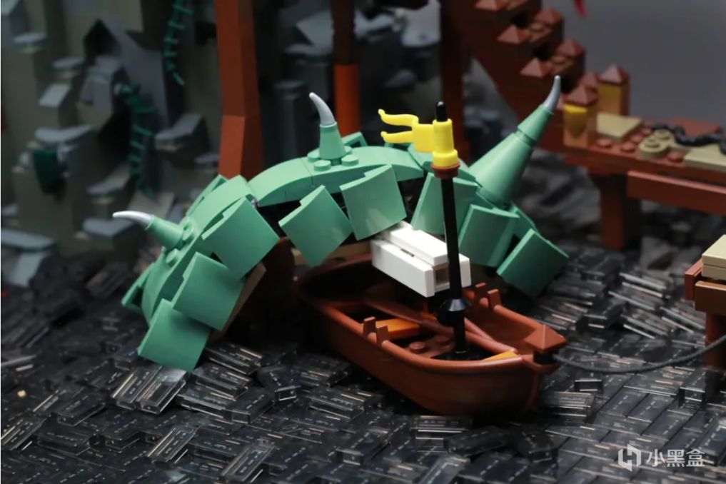 爲了突出海怪出現的恐怖氣息而採用的黑色海域,突出大蛇力量的凸起磚塊和上升的海水等等都是作者創意細節的體現。