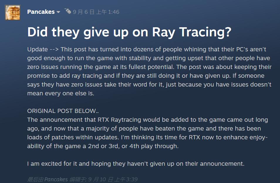 早在今年2月24日,《艾爾登法環》遊戲官網就發佈了一則補丁說明,上面明確表示:“光線追蹤功能的實施時程,計劃在上市後更新,詳細將在未來的公告中公佈。”