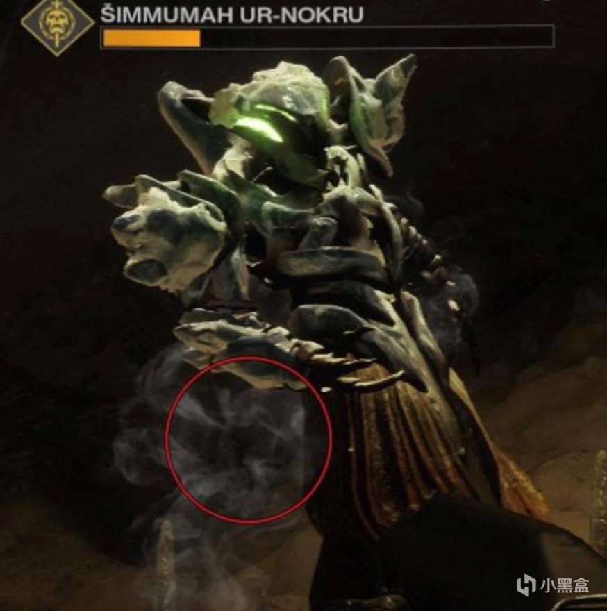 最终BOSS可能是“光能亡灵法师”辛姆玛·厄诺克儒(Šimmumah ur-Nokru, Lucent Necromancer,编者注:ur-Nokru应该是在邪魔族语言中表示此人是诺克瑞斯的子嗣或者血亲之类……此外,根据B站@Yogsail提示:此人是已退环境的打击奇异地带里面的一个小头目),其他相关的名字(小BOSS或剧情相关)有“萨瓦图恩之盾”艾克萨(Ecthar, Shield of Savathûn),“异端崛起”沃尔罗格(Vorlog, Risen in Heresy),“诺克瑞斯的侍僧”萨拉阿尔(Thul-Ar, Acolyte of Nokris)----编者注:名字上看感觉分别是光能邪魔族泰坦骑士、巫师术士和侍僧猎人,感觉要么小BOSS是同时打他们三个,要么是BOSS有一些机制可以召唤他们……