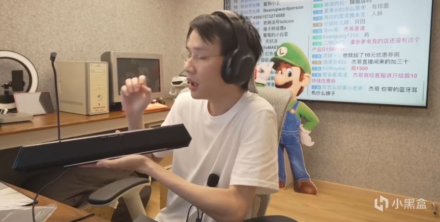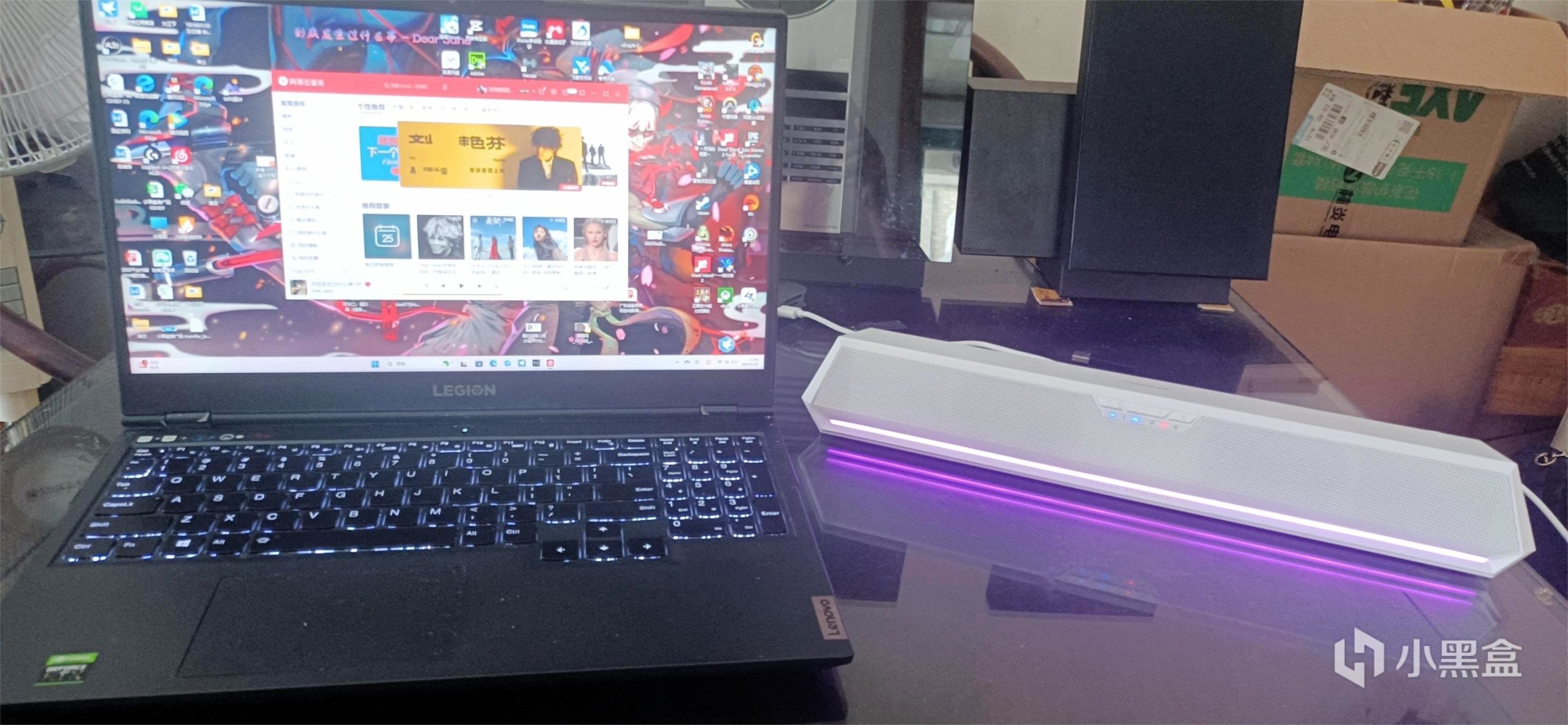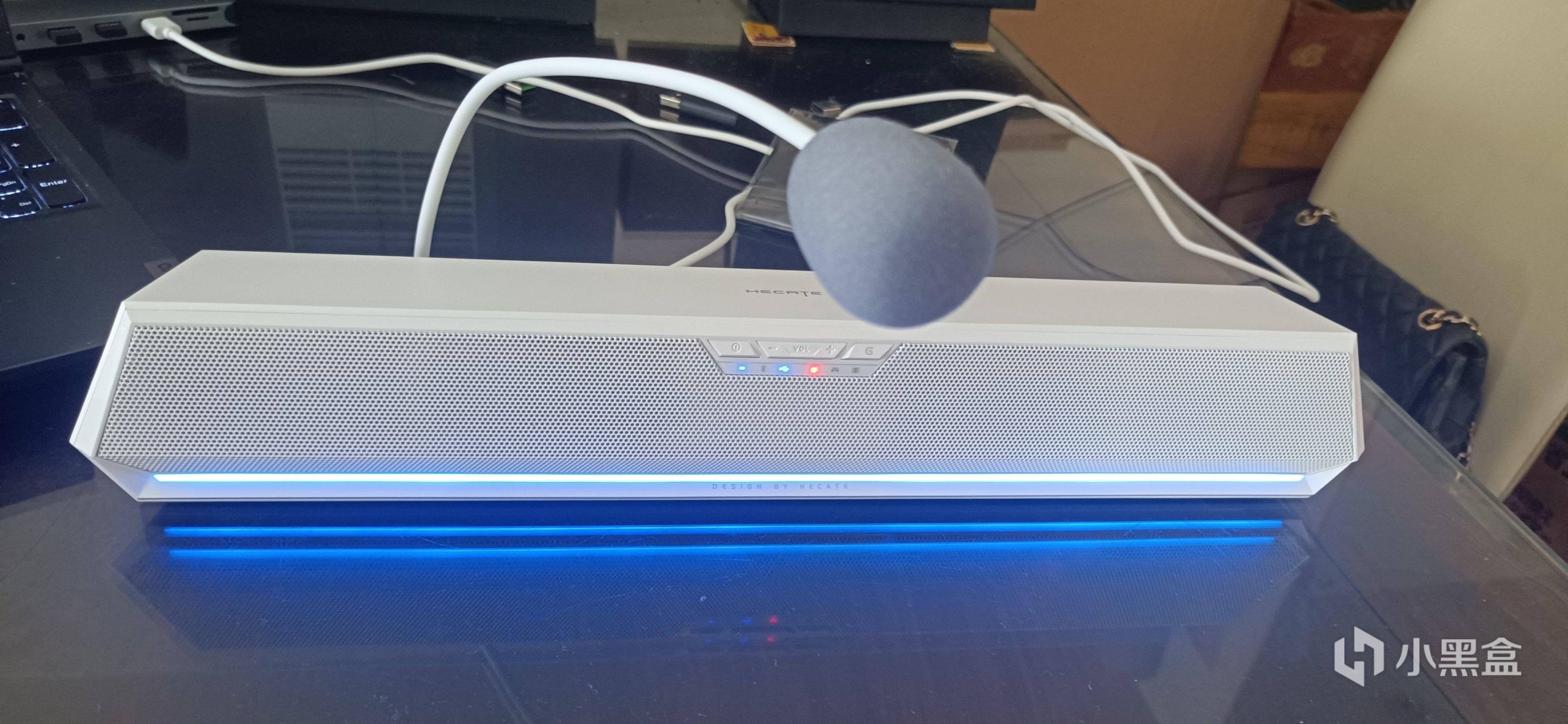 碰巧,看到超級小桀直播間在宣傳這款漫步者g1500bar,耳麥和酷炫燈效吸引了我,畢竟誰不是中二的二次元呢。同時橫條設計也方便我放在筆記本支架下面,價格也還可以,便下單了。