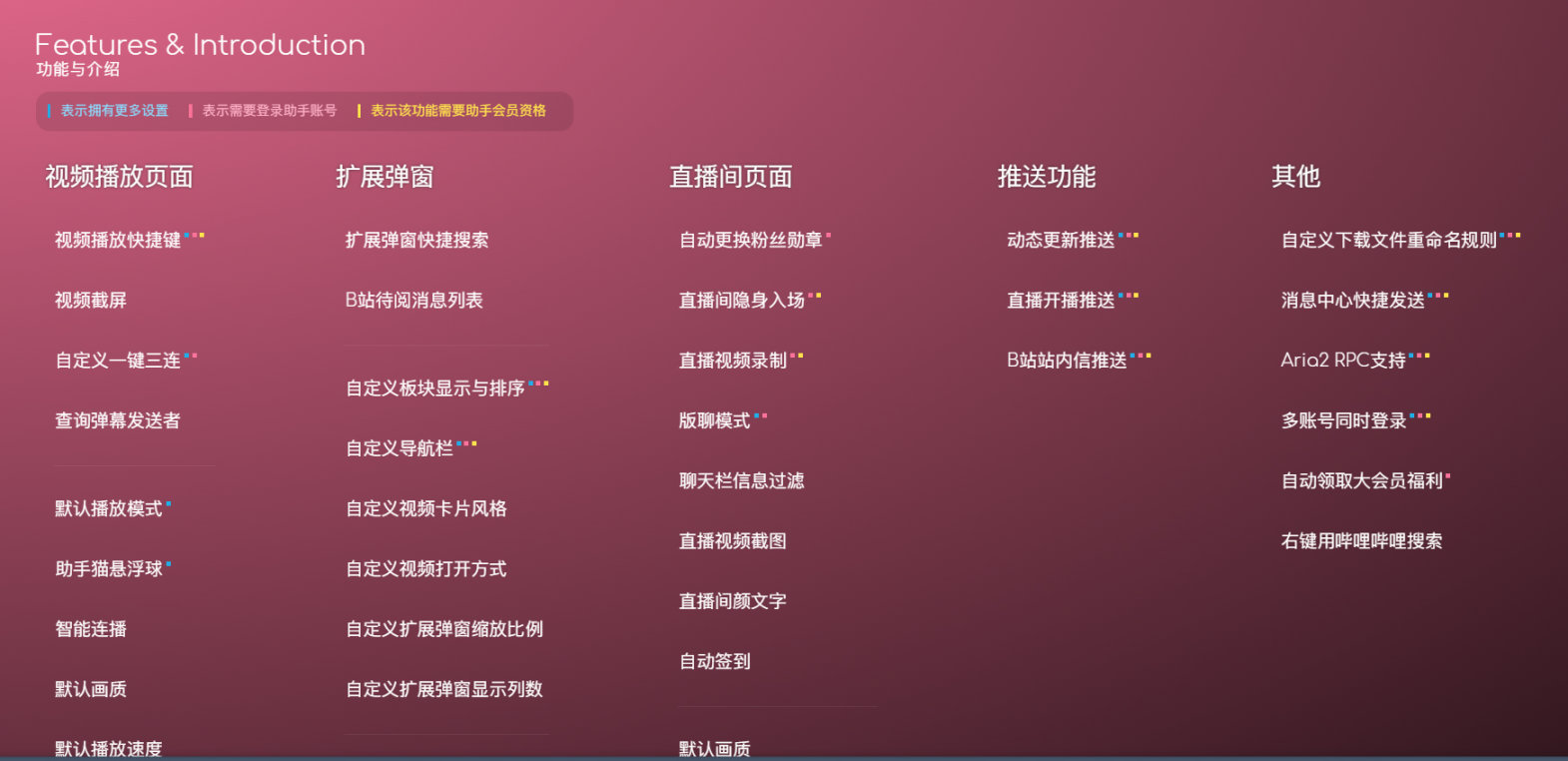 視頻下載、直播錄製、彈幕反查、動態推送、站內信通知、自動簽到、自動一鍵三連 ...