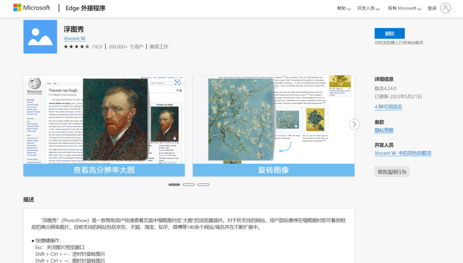 在各大擴展商店也是應有盡有,鼠標劃過自動顯示大圖與圖片尺寸,一鍵查看高清原圖,對其進行旋轉操作,快速下載圖片,功能全面,相當實用。