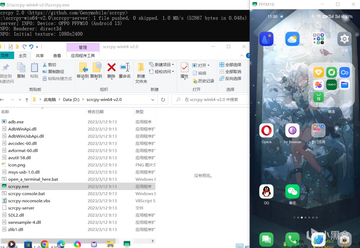8.打開scrcpy文件夾雙擊scrcpy.exe即可完成連接