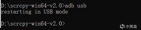 7.之後輸入adb usb(在這期間保持手機亮屏)出現如圖所示即爲連接成功