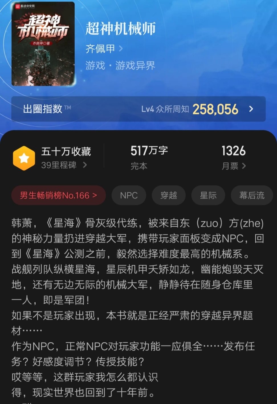 个人看法:游戏文,勉强算是科幻网文,较为推荐