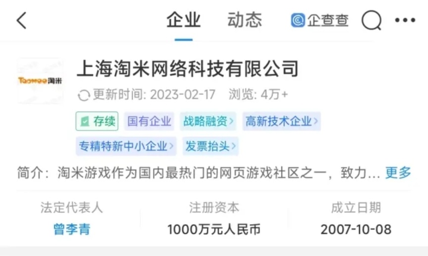 今年三月份还爆出了淘米游戏被迫成为国企(股东被执行,股权转移给了国有资本)的消息。当时大家也调侃道赛尔号终于找到了无尽能源。