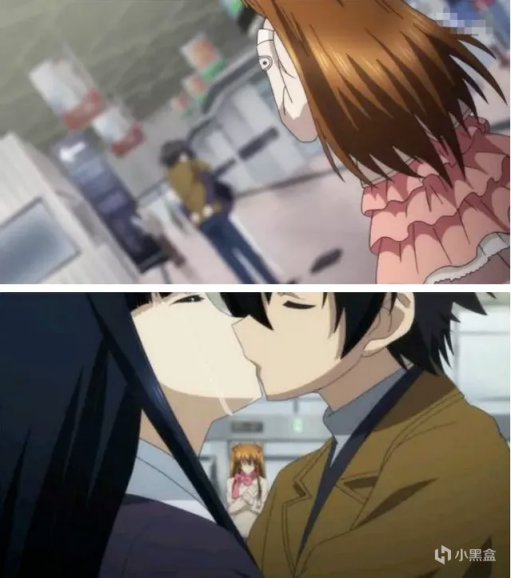 两人亲嘴,中间一个人在看,还是动漫中这段剧情的构图更加经典。