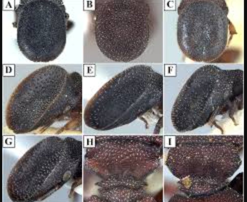 工蚁的头宽大于长,额叶隆突。膜状扩张的顶角逐渐变窄。颜色为:从棕色到黑色,