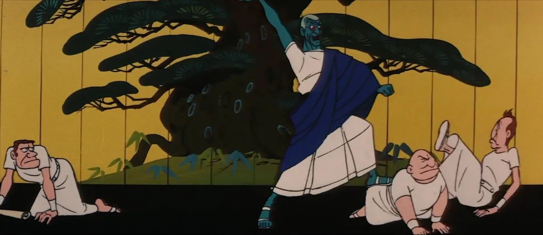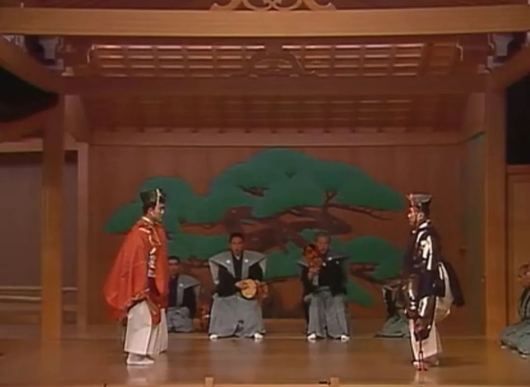 這段演出很有今敏《紅辣椒》大遊行的喜慶和荒誕的感覺。而最讓我感到驚喜的是凱撒在參議院被謀殺的這個情節,手冢治虫以日本傳統藝術形式“能樂”(のうがく)來呈現,能樂又分爲“能”和“狂言”兩項,前者是具有宗教色彩,演員戴着面具的悲劇,而後者則是十分世俗化的滑稽劇。
