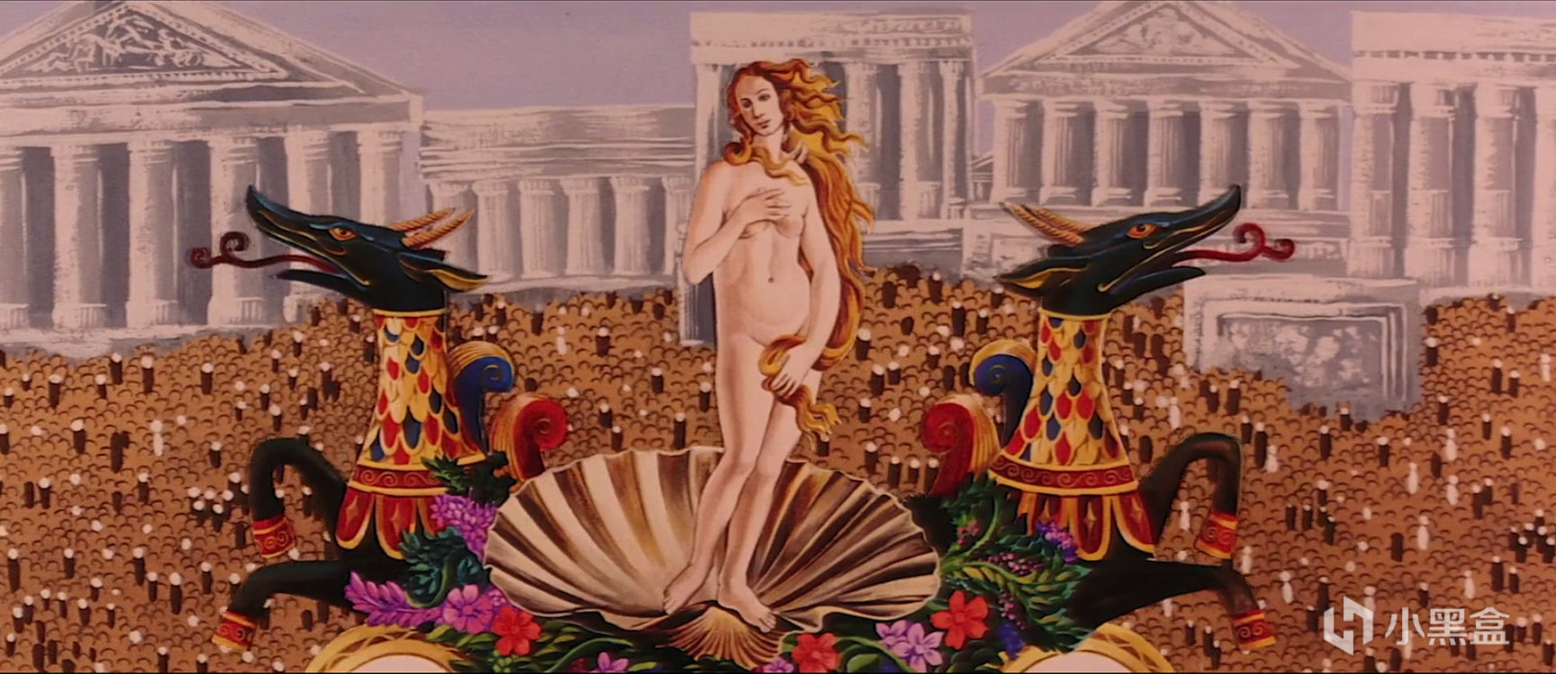 在凱撒征服埃及凱旋羅馬的那一段,爲了呈現出盛大歡慶的氛圍,手冢治虫將世界名作通通玩致敬了一遍。