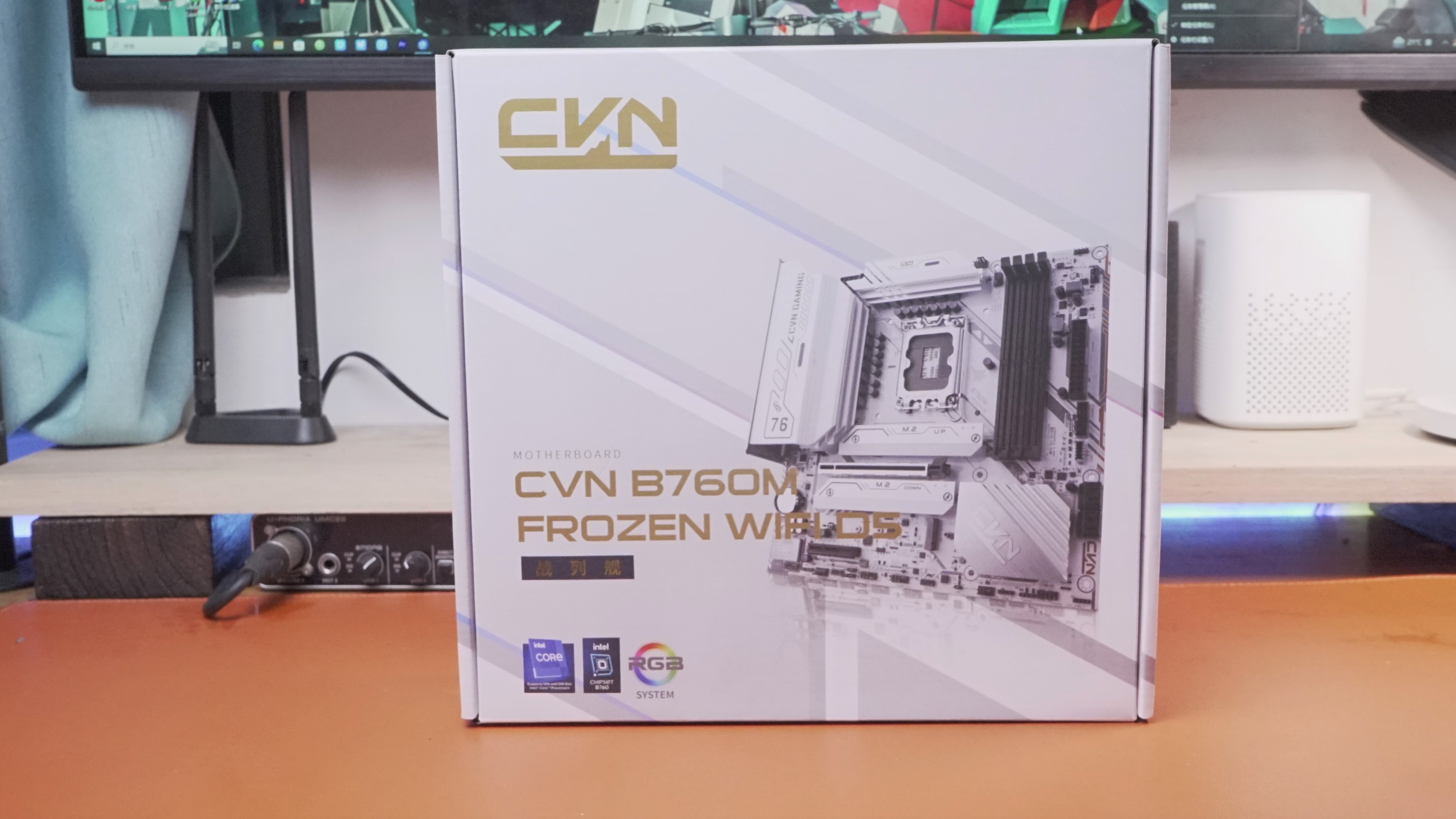 CVNB760M D5战列舰包装为银白配色,右上角有CVN LOGO标志,整个包装看上去非常的整洁