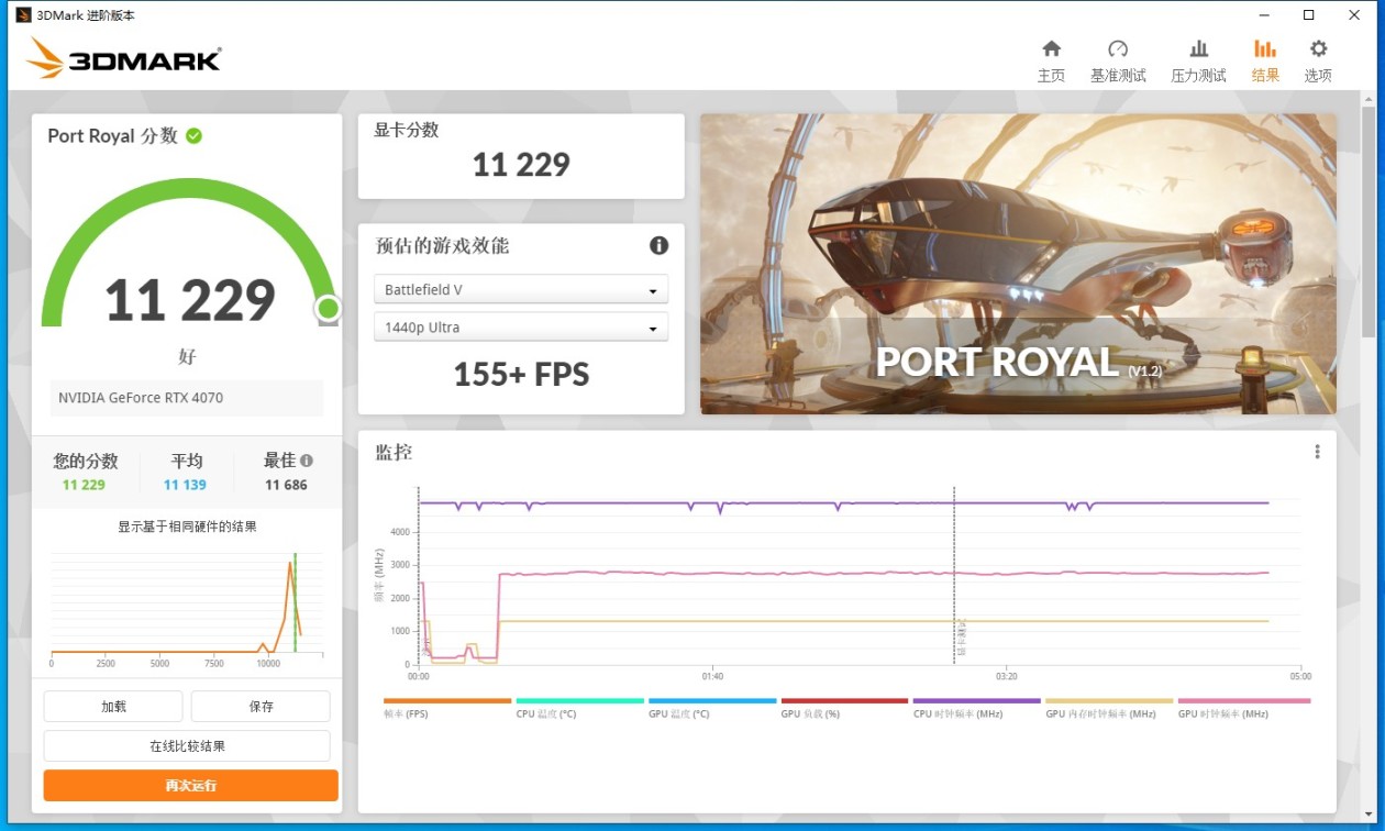 RTX系列都支持光线追踪,那么来实测一下!在测试光线追踪基准测试追的 Port Royal中得得了:Port Royal得分:11229分,显卡得分:11229分