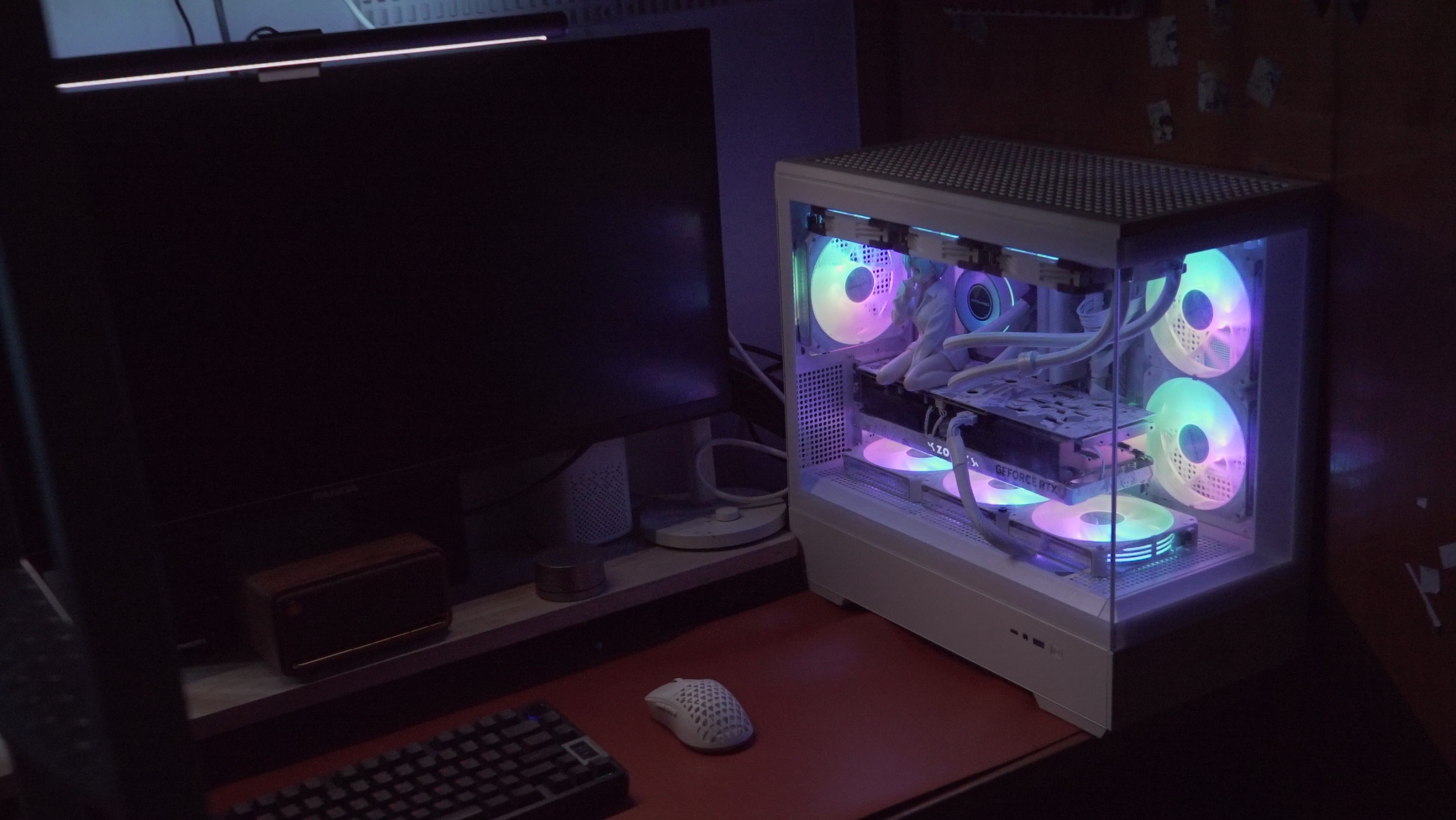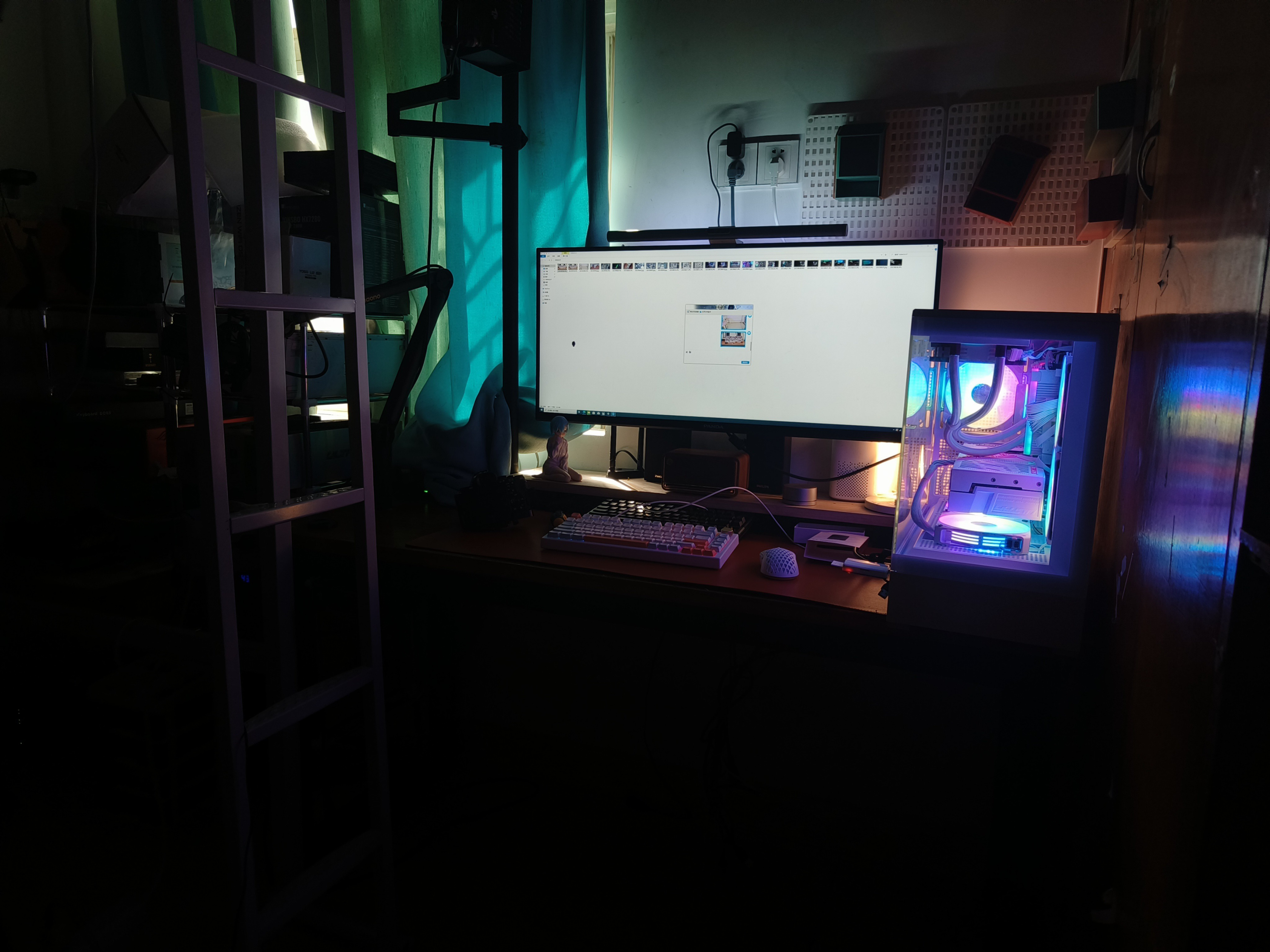 但我有很多不满意的地方的,比如灯光没有做好导致房间整体的氛围不是太好,还有就是桌子用的是普通的桌子没有选择电竞桌子等等的这些都是问题,但1.0之后再搞个2.0呗