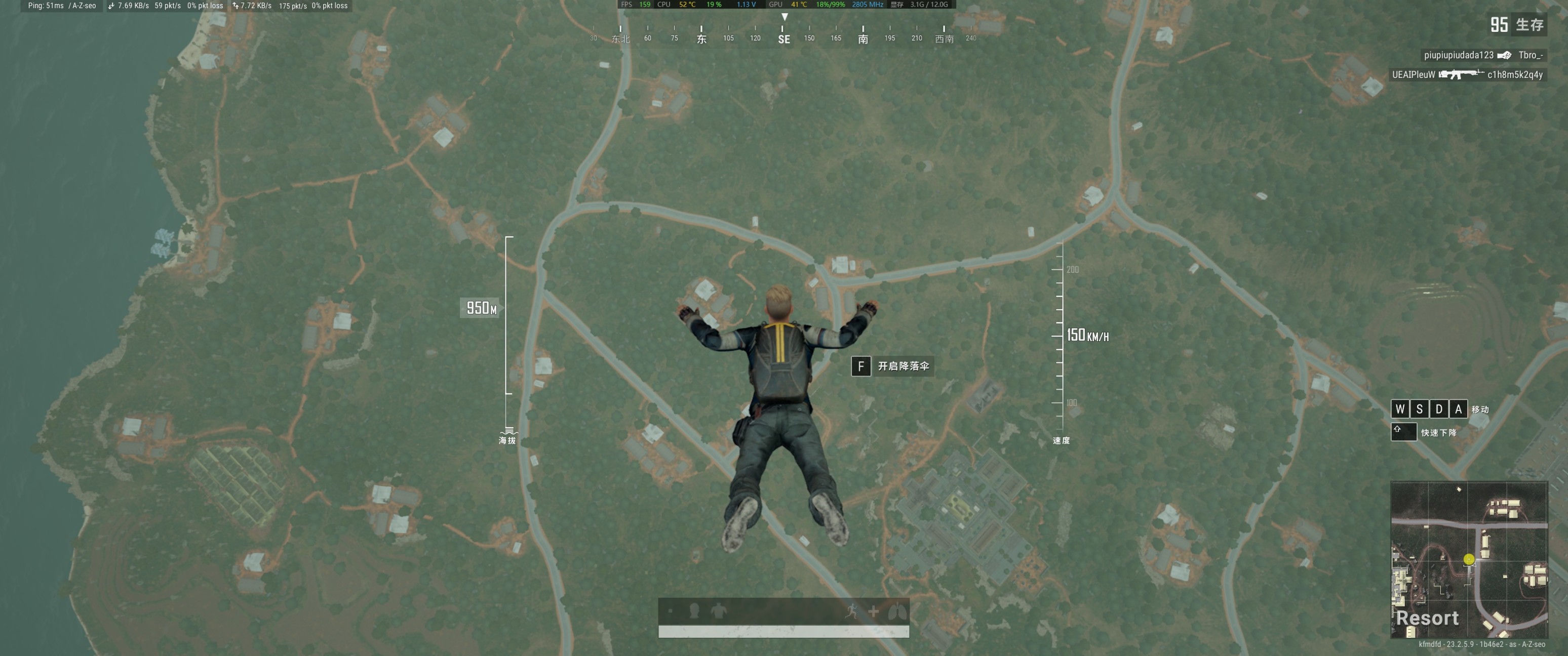 跳伞FPS为:159
