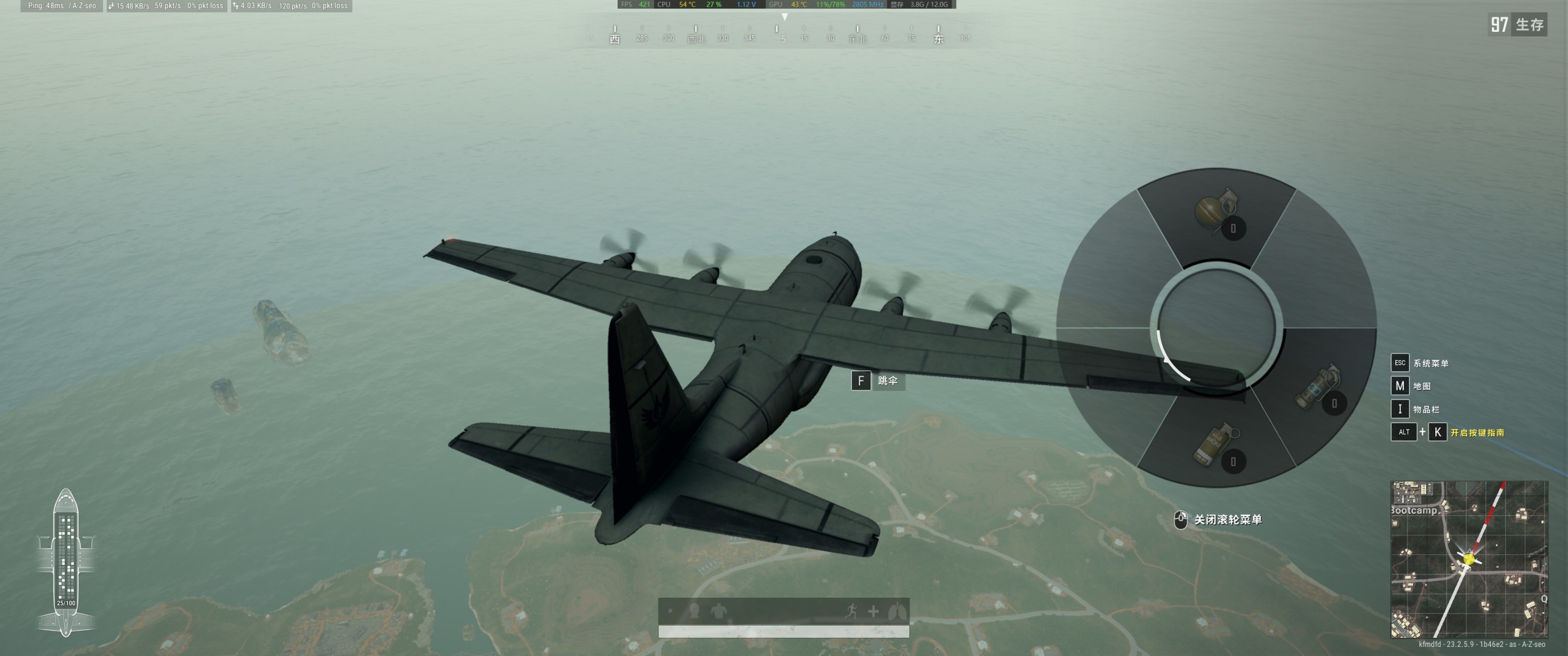 在飞机上FPS为:421