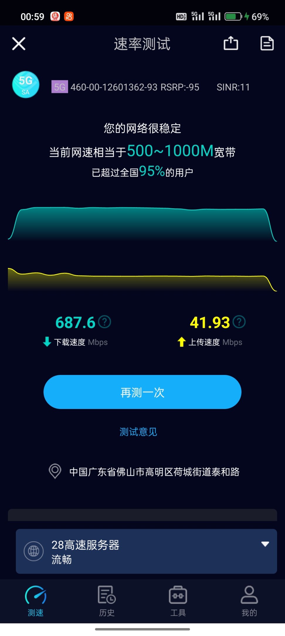 要直观的呢,就是WiFi的跑分了,在5G模式下他可以直接跑满,也还有溢出!
