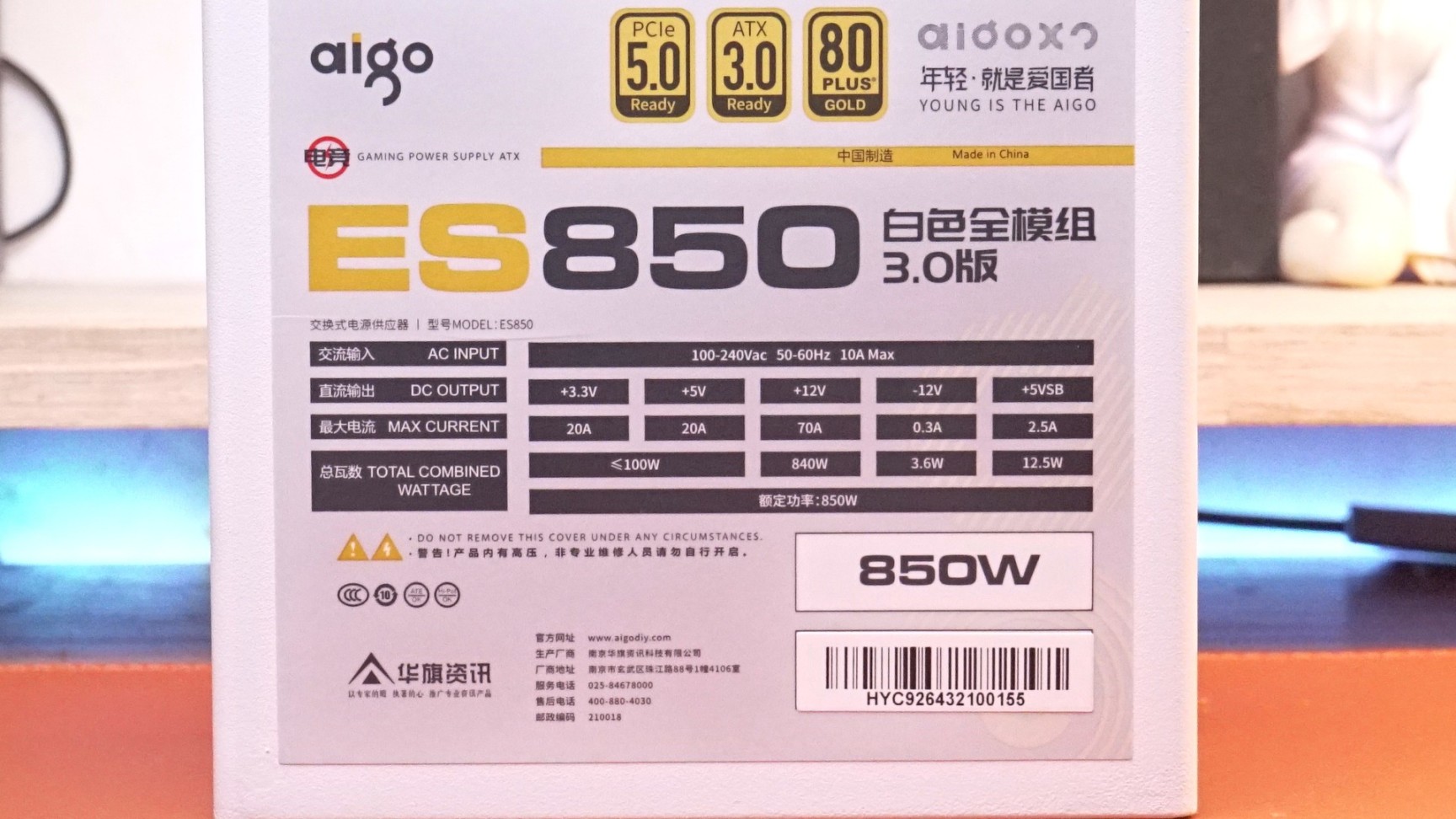 电脑因为这一次打算搞一个全白的方案,所以电源也要用白色的,综合考虑了了下电源选择了爱国者ES850W ATX3.0版本