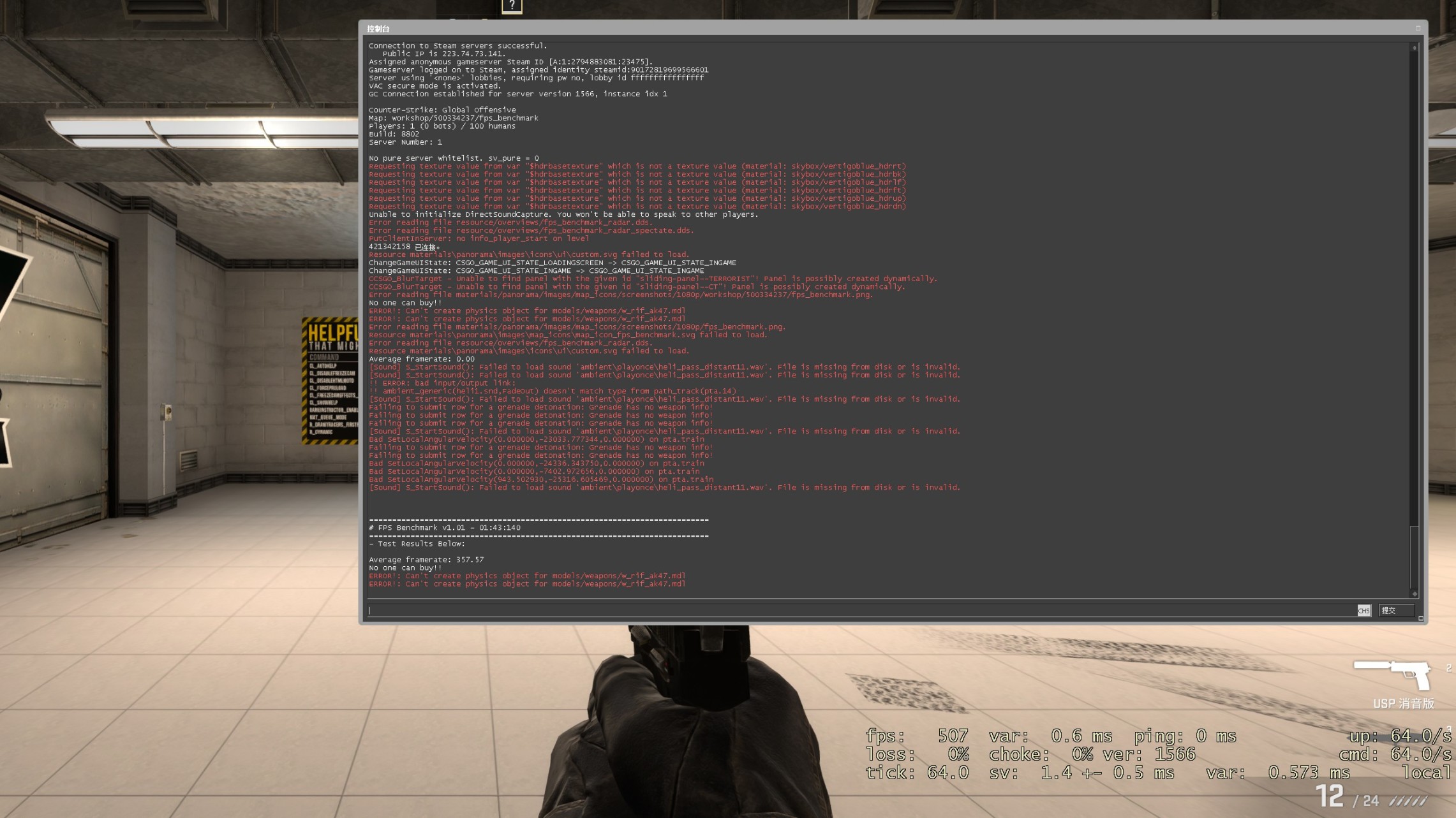 在CSGO跑分图中得到了357.57FPS