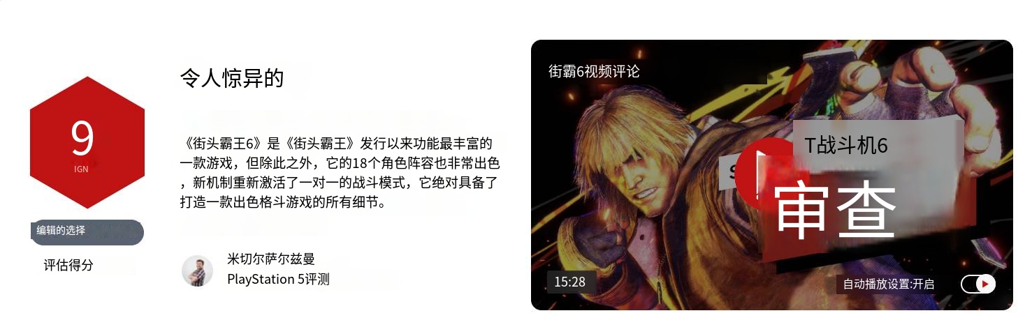 卡普空旗下知名格鬥遊戲IP《街霸》系列的最新作《街霸6》的媒體評分現已全面解禁,知名評分聚合網站 MetaCritic(簡稱M站)收集了53家媒體評分,平均分爲92分!