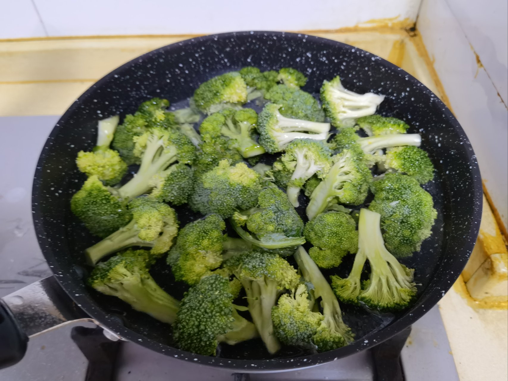 捞出西兰花,另起锅倒油(记得烧干锅内的水!),中火热油,