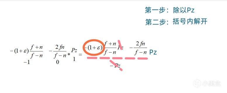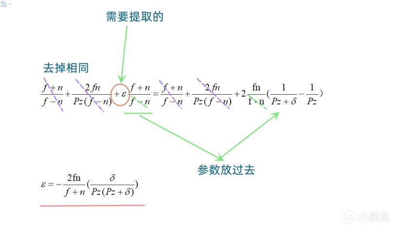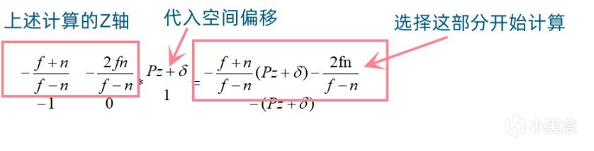 这是Z轴,上面也算过一次Z轴,两个值进行相等,抽离出这个偏移常数e