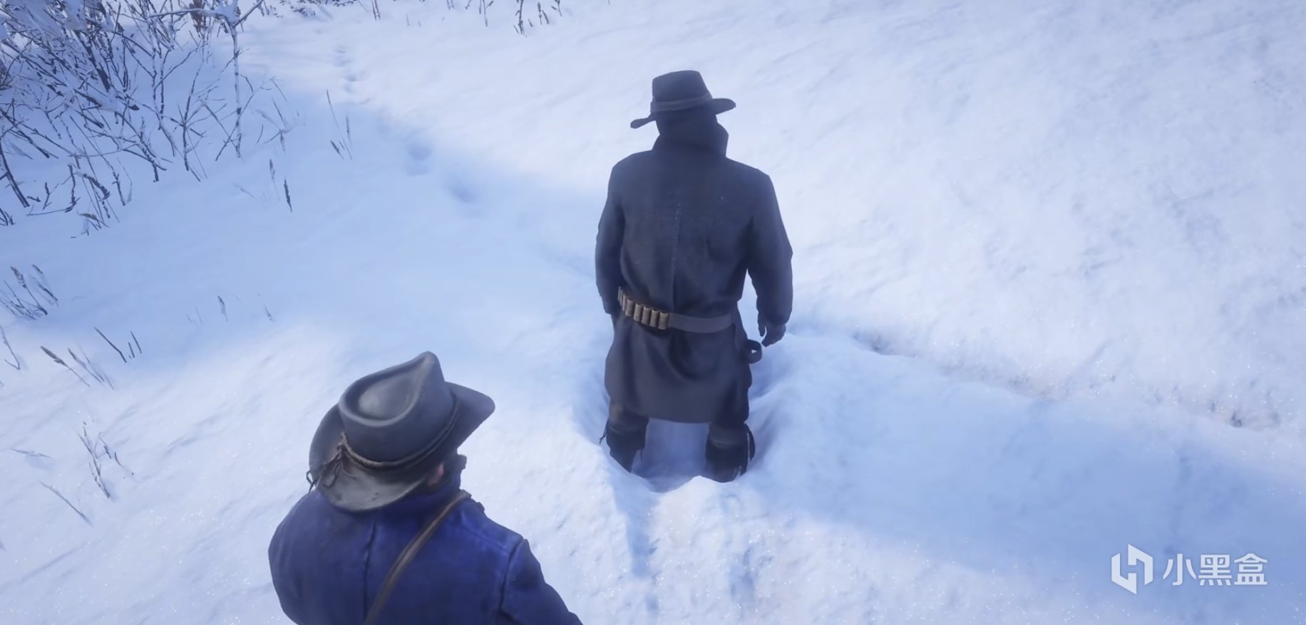 荒野大镖客2的雪地里走路,人物踩下的雪印