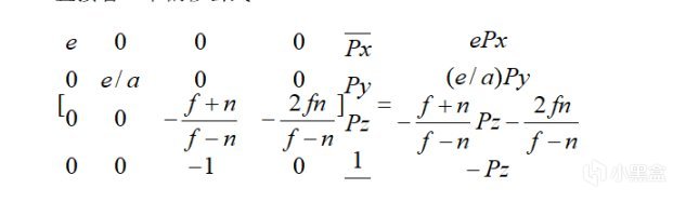 采用标准的OpenGl透视投影矩阵对观察空间一点P