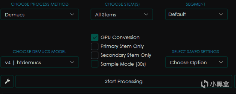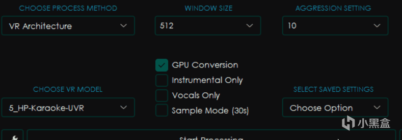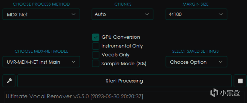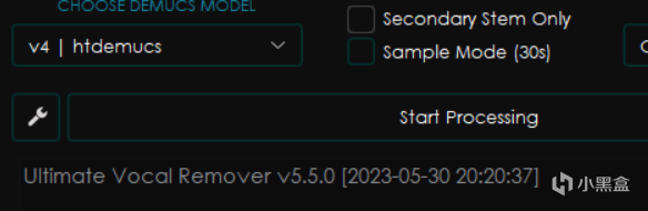 首先是要找到Start Processing左边的这个小小扳手按钮,这就是UVR的设置按钮。