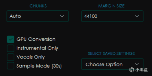 然后右边选项分别是CHUNKS块大小和MARGIN SIZE(实际上就是目标采样率,只有默认的这个模型有,其他模型会有其他选项,比如Noise)