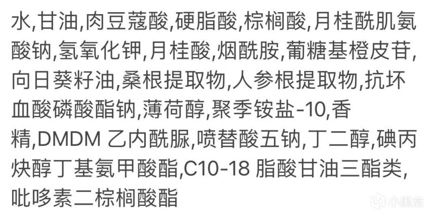 清洁主体是以肉豆蔻酸,硬脂酸、棕榈酸,月桂酸,复配强碱氢氧化钾,构成的皂基体系,辅助表活为氨基酸表活月桂酰肌氨酸钠,美白成分烟酰胺的添加,在洁面产品中,作用不大。无色素,有香精的添加。