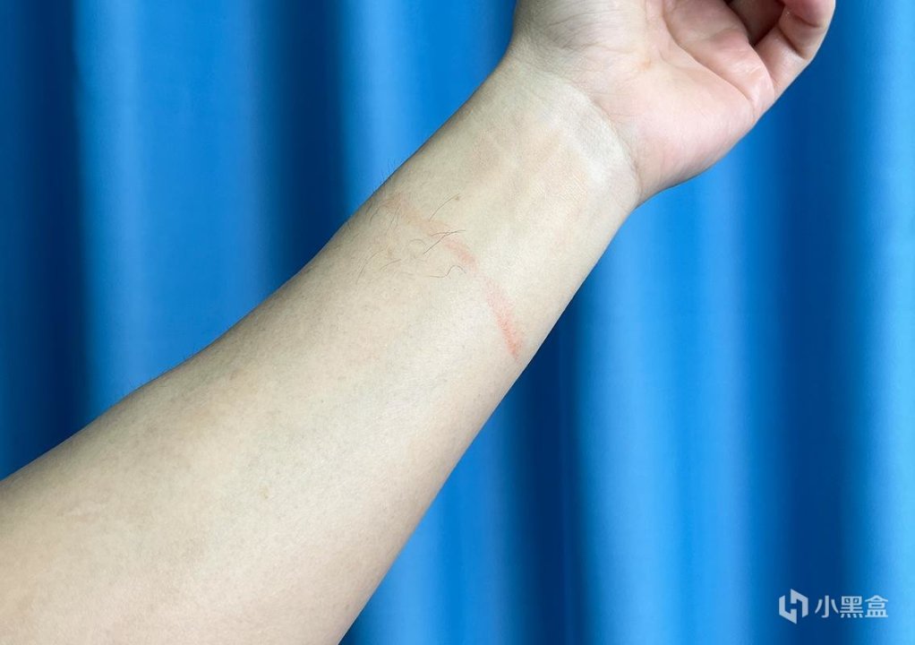 再看看对,彩妆的清洁力,手臂内测涂上彩妆,10分钟后,洗面奶搓出泡沫,揉搓清洗彩妆,用清水冲洗干净,可以看到,口红和眼线笔会有轻微残留。综合多个维度看,清洁力还可以。