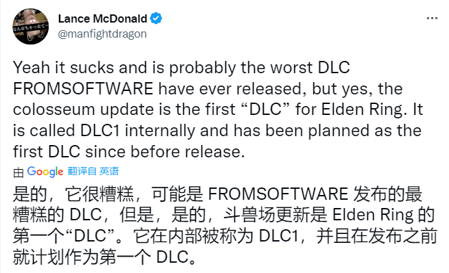 知名爆料者 Lance McDonald 在Discord中表示,FS社原先100%計劃爲《艾爾登法環》推出兩個DLC,但不知何時被取消了,然後“競技場”內容更新就隨機免費的出現了。