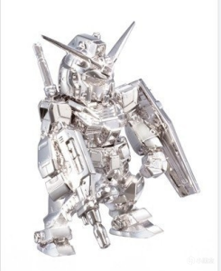 “SILVER950RX78-2GUNDAMFeaturingROBOT魂”,售价64.8万日元(约合3000余元人民币),除此之外还有缩小版的Q版发售,售价也是不菲。