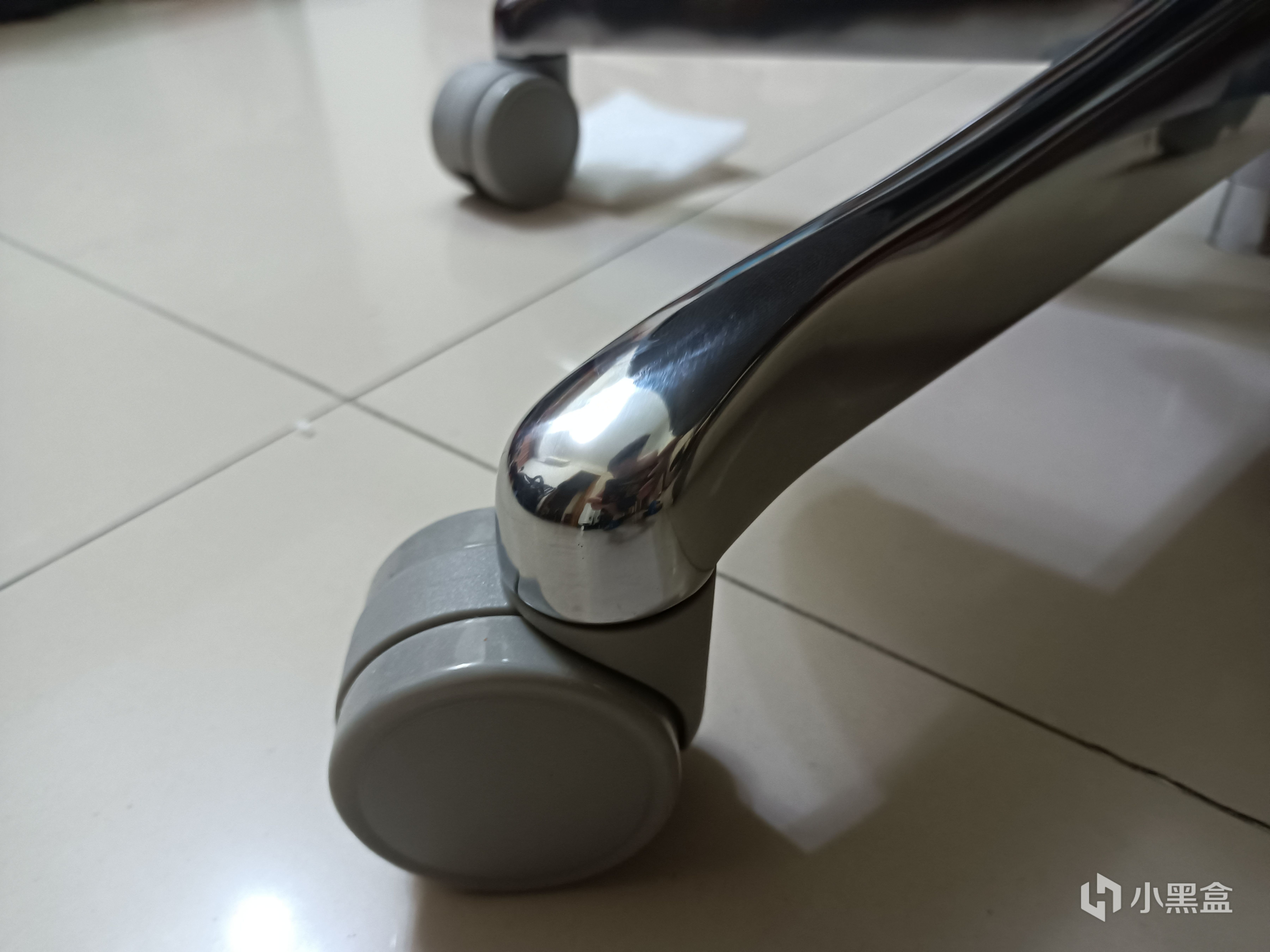 最后要说的是轮子,轮子是静音的加厚PU轮。之前无论使用过的椅子轮子,要么划动声音特别响,要么轮子材质不好刮花地板。而这张保友b2轮则没有这个烦恼,完全可以在家里随意移动,也不打扰别人休息。