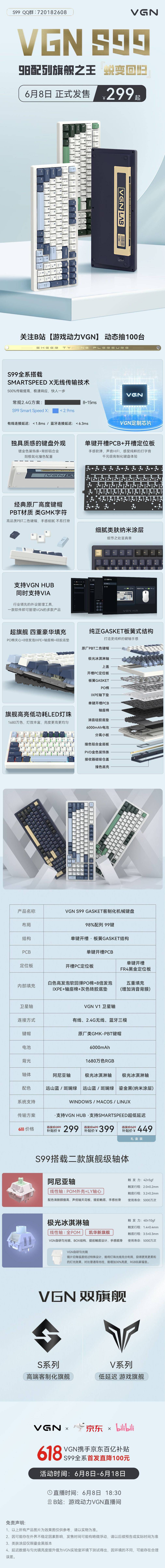 作爲昨天剛發售的一款75%配列鍵盤,似乎就是爲了和VGN N75搶佔市場。由於發售臨近618,比VGN晚發售,看起來似乎從全方面吊打N75。多的就不說了,直接上價格表,這個配置在以前是絕對不敢想的,少說也要四五百。