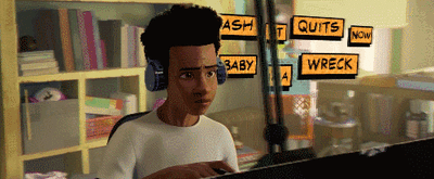 迈尔斯并没有经历彼得帕克那般失去至亲的痛苦,也没有得到“能力越大,责任越大”的真谛,事实上他身上所具体展现的风格,就是我们年轻人狂妄不羁的那一部分。