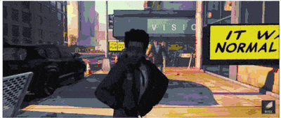 故障艺术在近两年不论是游戏还是影视作品都比较常见,例如EA最新的《极品飞车:不羁》就采用故障艺术,来凸显赛车引擎轰鸣的声音,老生常谈的漂移,也能在故障艺术的加持下变得无比新鲜,像是刮碎了某个时空,喷涌而出的不是氮气,而是聚合失真的颜色肆意挥洒。