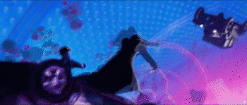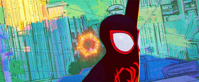 涂鸦艺术是《蜘蛛侠:平行宇宙》中最常见的2d手绘,由于迈尔斯本身就处于一个叛逆、性格张扬的年龄段,这种艺术表现被很好的融入进背景世界,也展现了一个完全不同风格的蜘蛛侠。