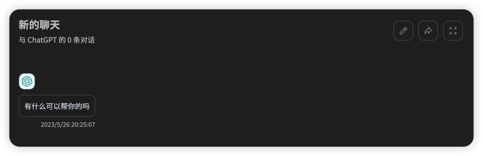 填寫完成後,點擊右上角的關閉按鈕,即可看到默認的提示語“有什麼可以幫您的嗎?”現在您可以開始與GPT對話了。